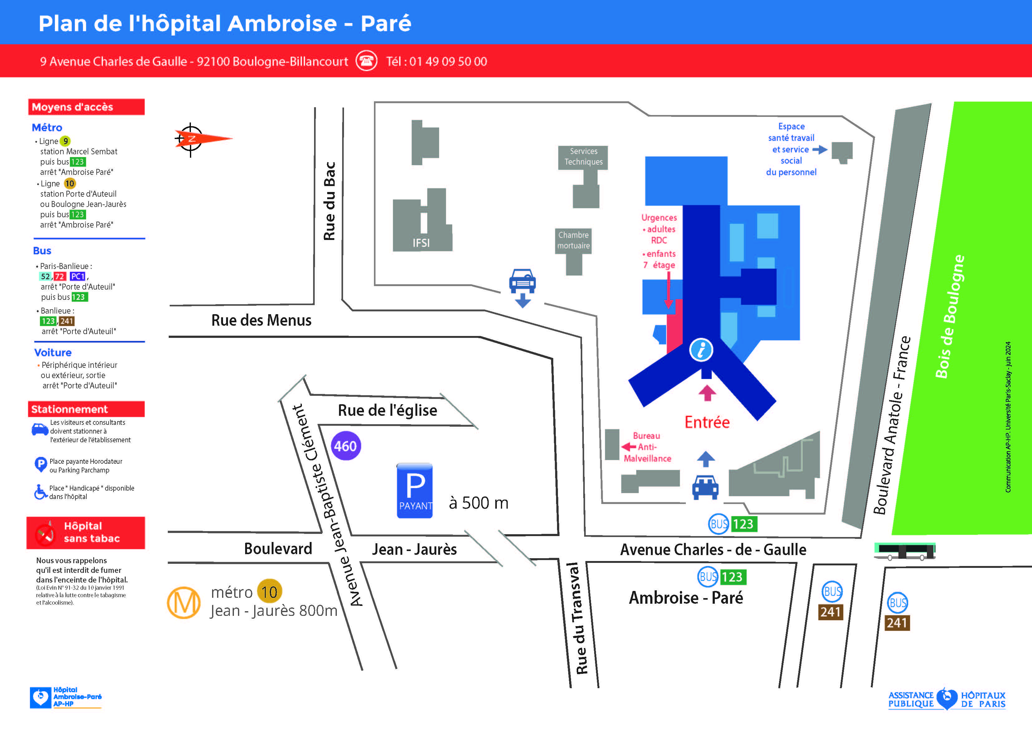 - Banlieue : 123, 241 arrêt "Hôpital Ambroise-Paré"